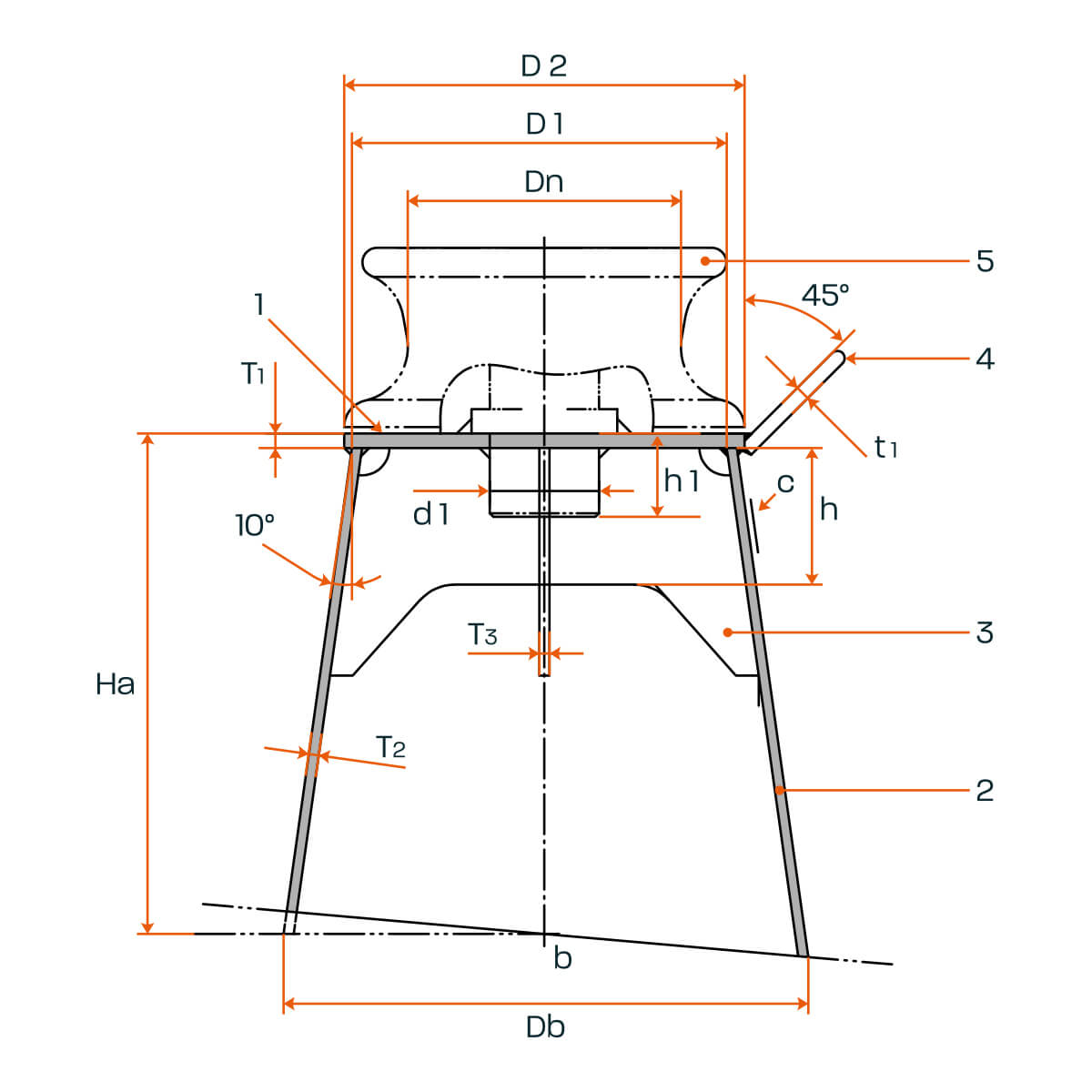 | 2 | Body | 6 | Axle | Db | To be determined in accordance with the height of the pedestal |